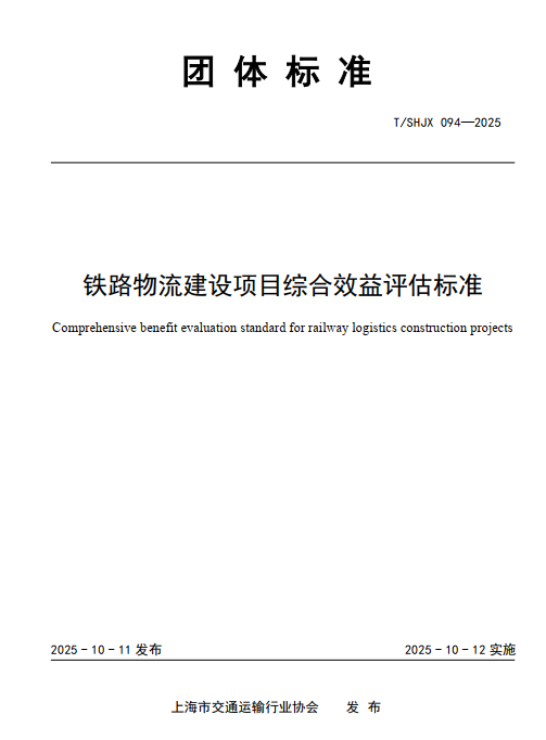 经上海市交通运输行业协会第八届理事会第三十七次秘书长办公会议和团体标准工作委员会专题会议(2025年10月10日)研究与审核,我院参与制定的《铁路物流建设项目碳减排测算标准》《铁路物流建设项目综合效益评估标准》两项标准得到同意批准,并从2025年10月12日起公开发布实施。